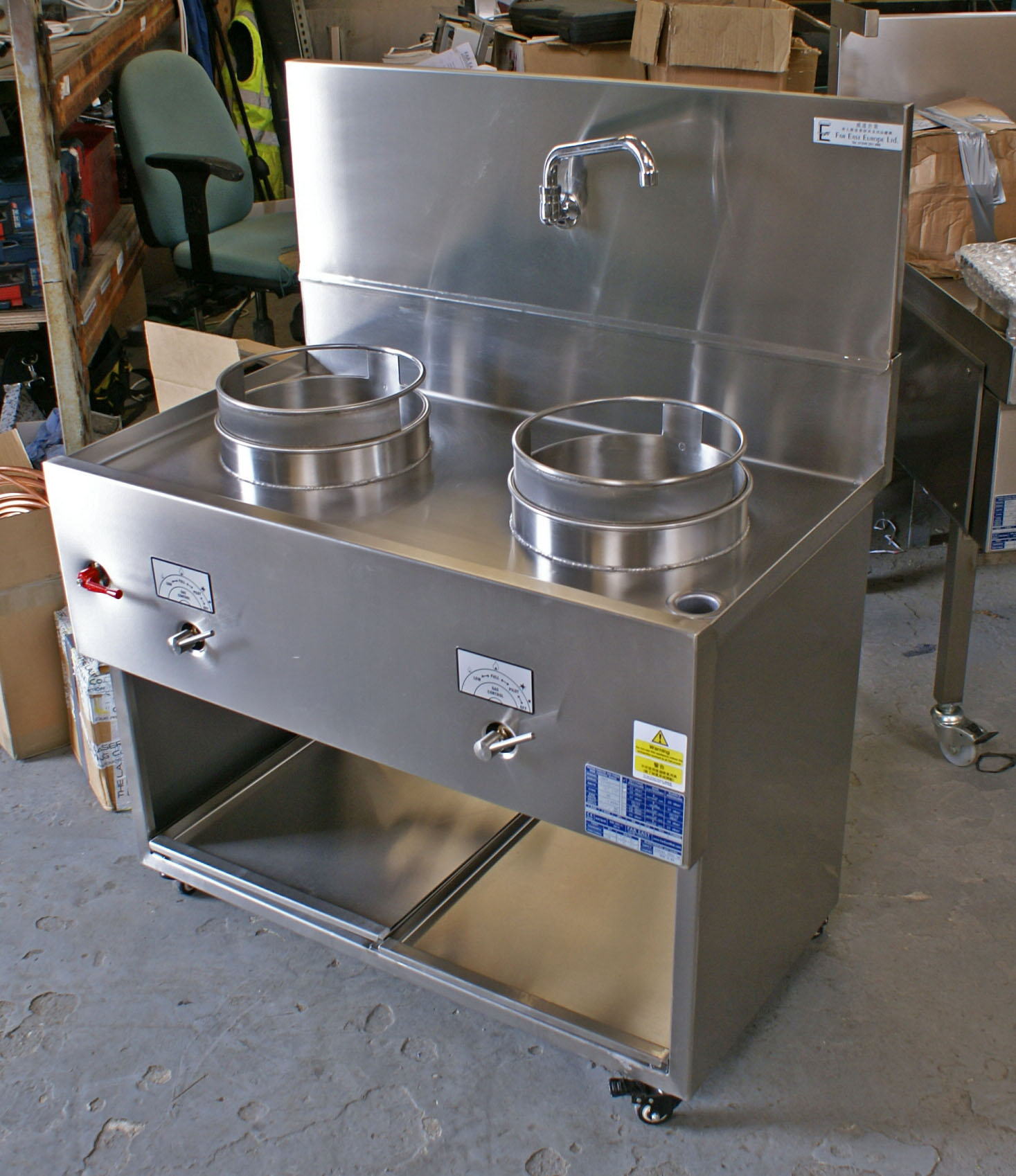 We have just completed this specially commissioned wok burner, that will be integrated into bespoke cabinetry at site. It is pictured in our test bay undergoing final checks and QA. It has the optional CECIR/XTRAO cast iron ring, which you can purchase for your cooker at https://www.fareastwok.com/product/cast-iron-ring-xtrao/
