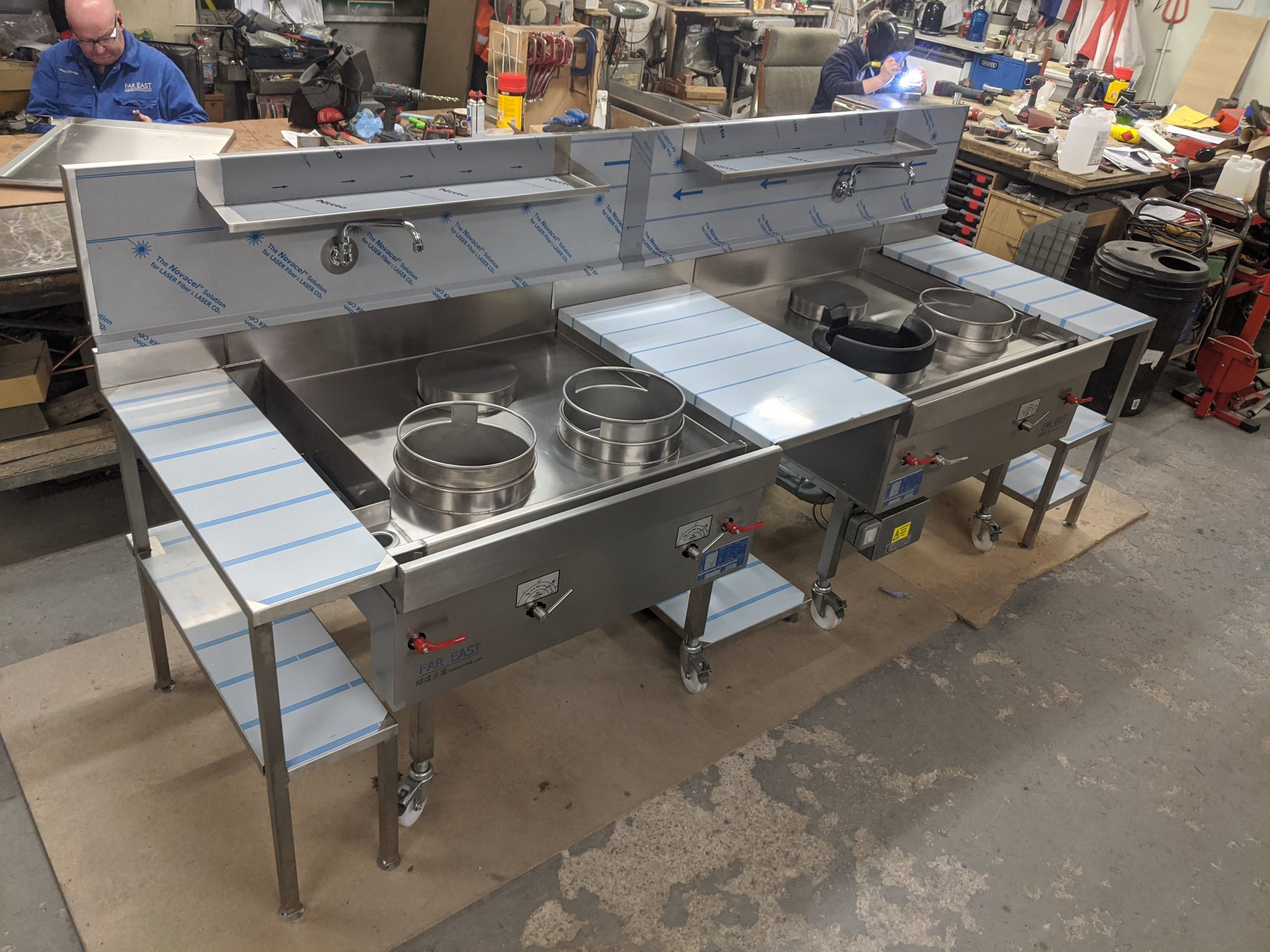 Three of our recently built special size wok cookers, shown in our factory are: